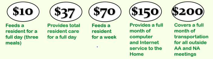 In the current fiscal year, the Fellowship Home expects to receive approximately 32% of our revenue from service fees and the small weekly rent paid by our residents. The remaining 68% must be raised from donations and grants.